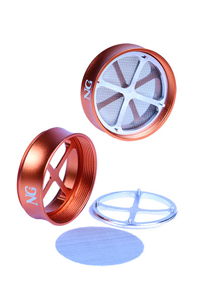 A 4-Piece CNC-made pure aluminum grinder with 27 tricorne teeth that have super sharp edges to shred your herbs into fine consistency. It includes pollen screen and catcher sections and has scraper included. The nylon friction ring ensures smooth grinding when the magnetic lid is cranked. It is designed with ridges that provides a good grip at both the top and bottom.