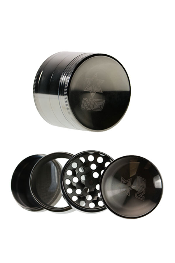 A 4-piece construction that includes pollen screen and kief catcher sections. The compartment that holds the teeth is bowl shaped which allow the herb to easily fall into the screen compartment below. It has a magnetized lid and a nylon friction ring to ensure smooth grinding.