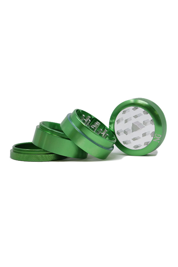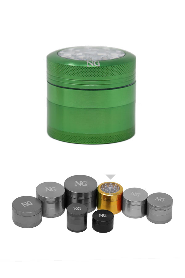 This small aluminum grinder features a top window to view the progress of the 18 diamond-shaped teeth shredding your buds. The 4-piece construction includes a pollen screen and pollen catcher sections. It has a nylon friction ring ensures smooth grinding and a non-thread magnetic lid.