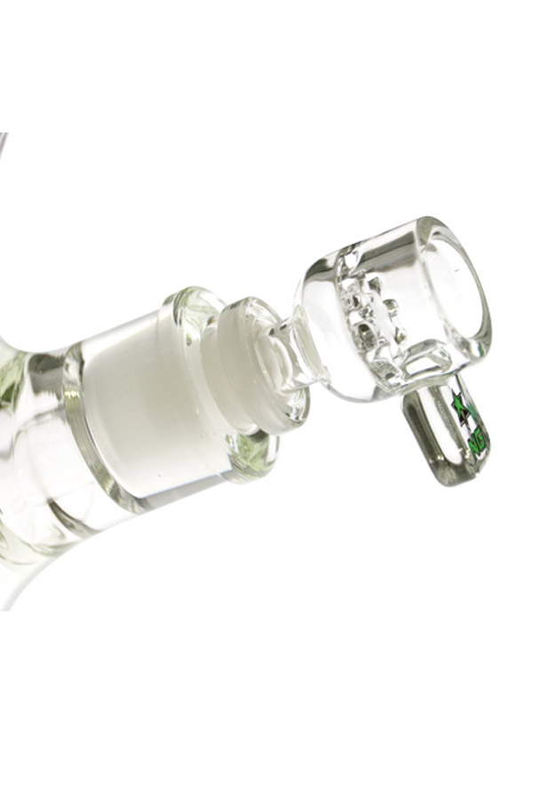 This prominent 18-inch tall Nice Glass beaker bong is at a hefty 9mm thickness. It is molded to perfection — a process of eliminating any flaws and maintaining consistency in thickness throughout the glass. A straight-forward beaker design with a honeycomb herb bowl and a slitted downstem. This is one of our bigger and heavier pieces that is made to last and is very popular with fans.
