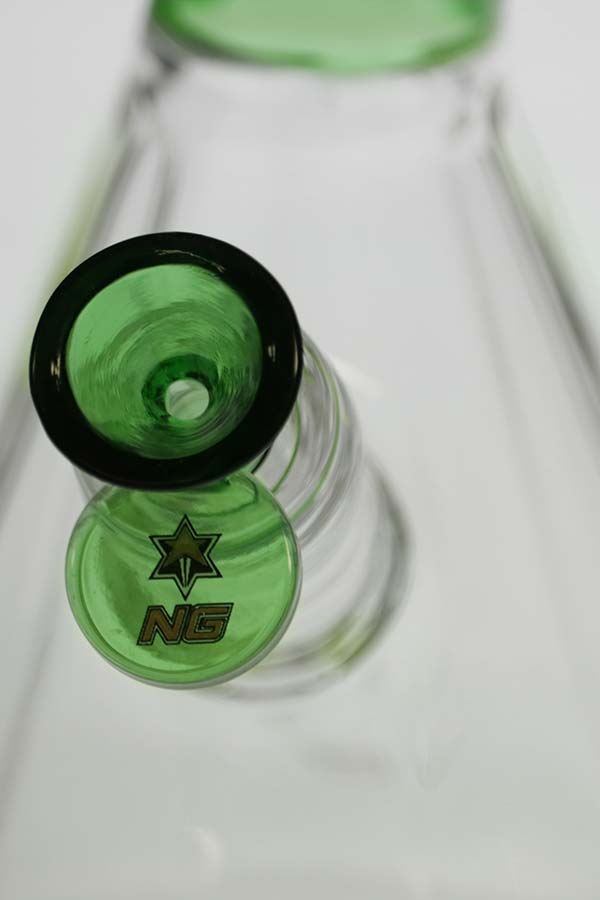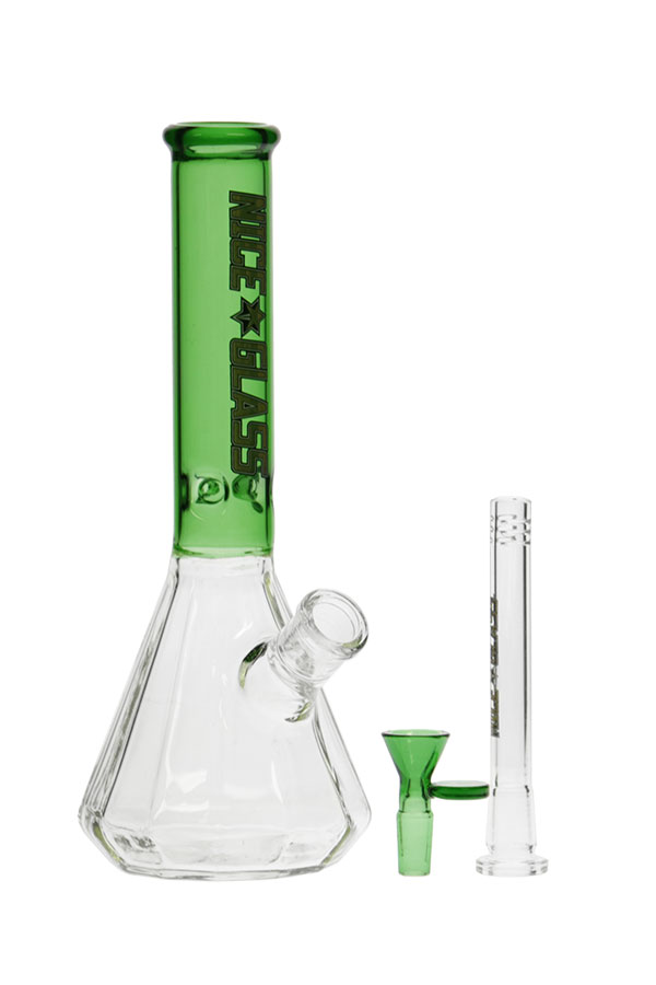 This is a beautiful glass with a 12-sided pyramid design that functions as the classic beaker but with a touch of sophistication. It is 5mm with an even thicker base bottom. It comes with a slitted diffuser downstem and a full-colour herb bowl with a polished joint. Ice notches allow for several cubes to further cool the smoke.
