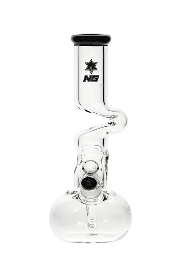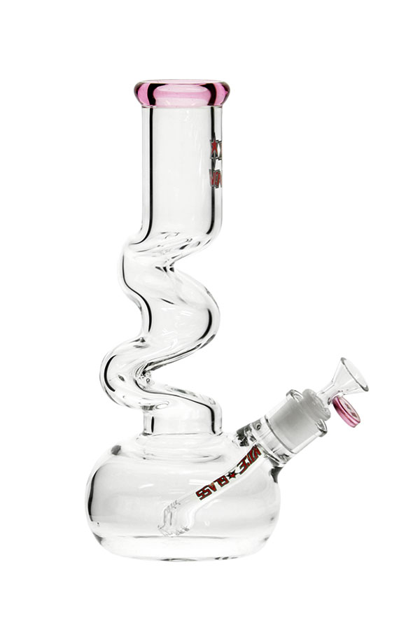 The kinks in this water pipe extend the length the smoke has to travel before exiting, creating more surface area for cooling. The round chamber provides ample capacity for more water. The diffuser down stem has horizontally slotted notches and it comes with a herb bowl.