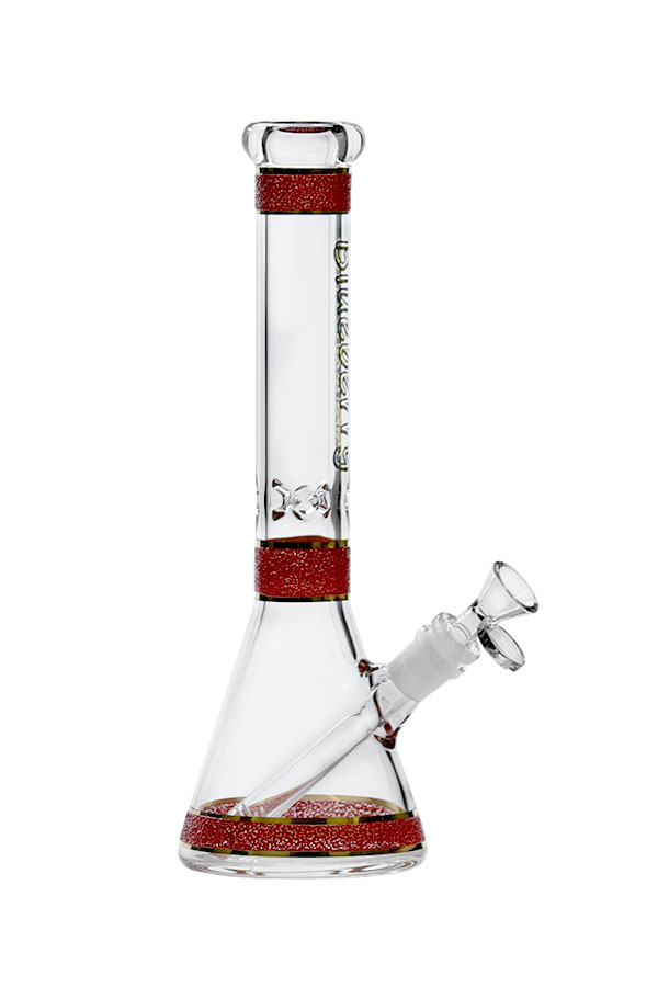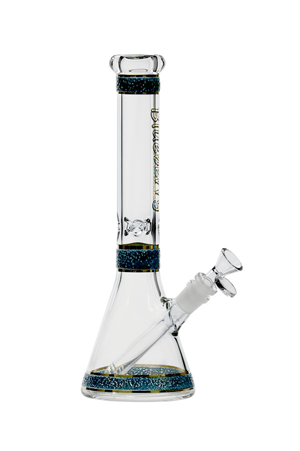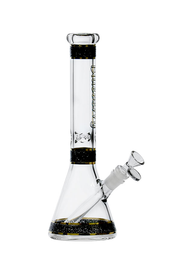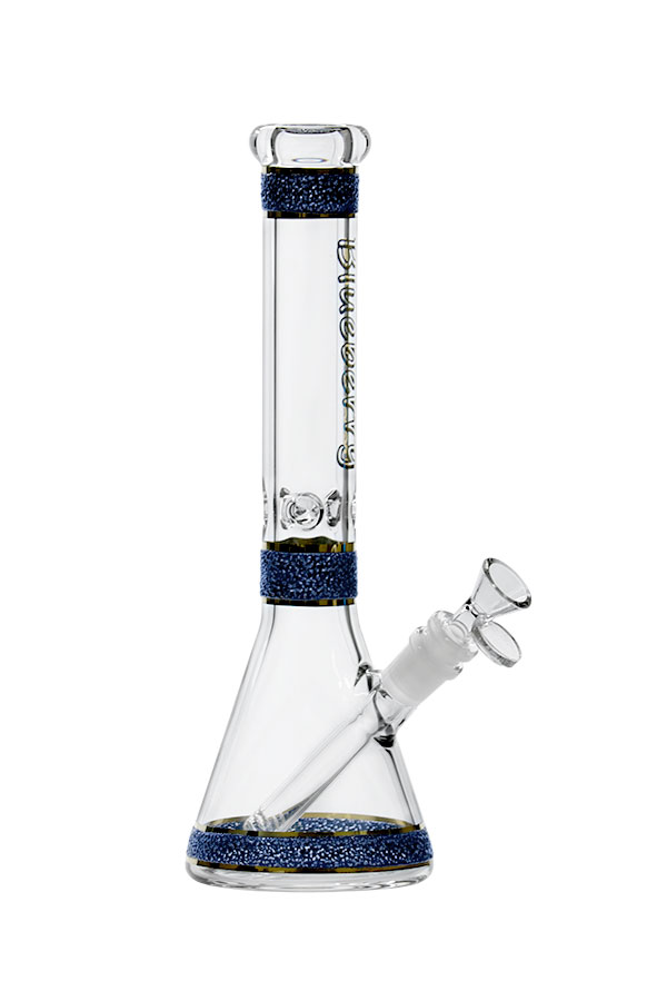 This Blueberry classic beaker features clean lines adorned with three textured plated bands available in a few colour choices. It comes with a diffuser downstem, herb bowl and ice notches.