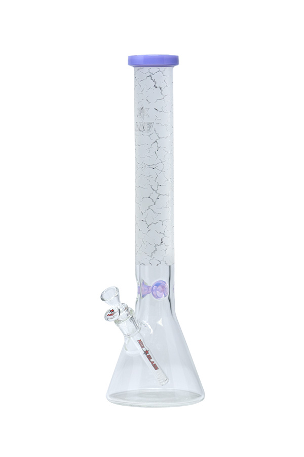 This sandblasted beaker measures 18 inches in height and adorned not only on the tube, but also on the stable circular base. Ice notches enable you to place a few ice cubes in to further cool the smoke. Colour accents on the flared base, ice-pinch, and mouthpiece. Available in a range of colour choices.