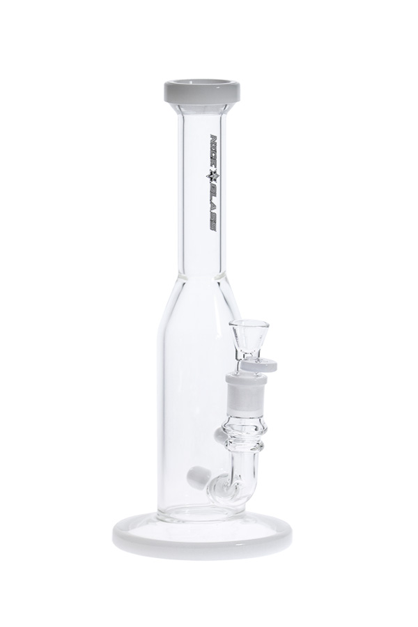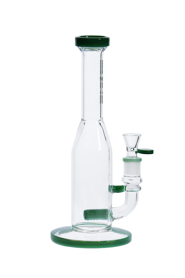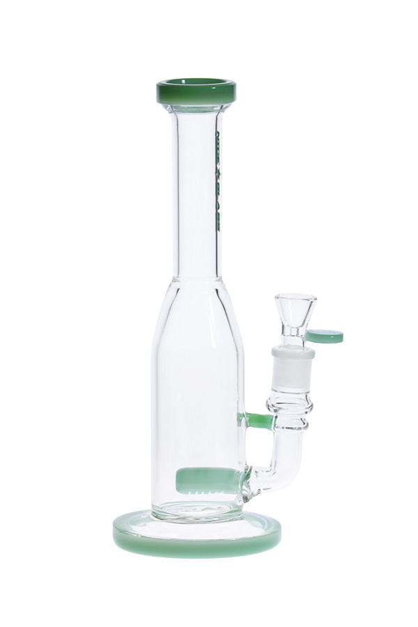This coke bottle bong comes equipped with an inline slitted percolator and herb bowl with roll stopper. The wide sturdy flared base has coloured glass accents matching the slightly flared mouthpiece. This fits perfectly in your hand — like a coke bottle, and not too light or heavy to hold. Available in a range of colour options.