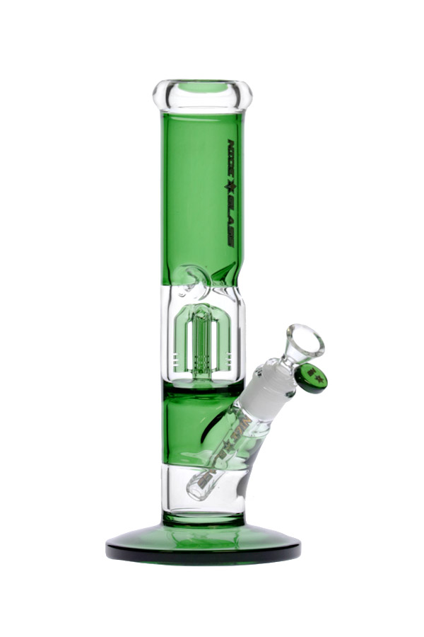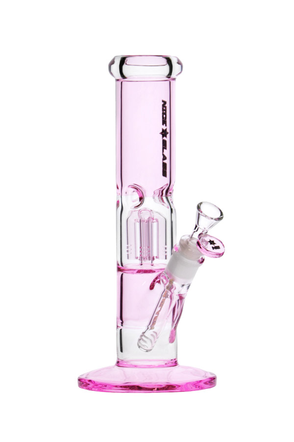 This mini percolator bong features a 4-arm percolator and comes with ice notches, diffuser downstem and herb bowl. It has mainly colour glass throughout and on the roll stopper to match and is available in a range of colours.