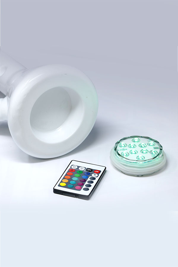This bong is lit! Literally. Embossed with our Nice Glass NG logo on the neck, this beautiful ceramic piece can light up your experience. Choose your favourite colour or press flash, strobe, fade, or smooth settings for a light show. The LED lighting unit fits flush under the base.