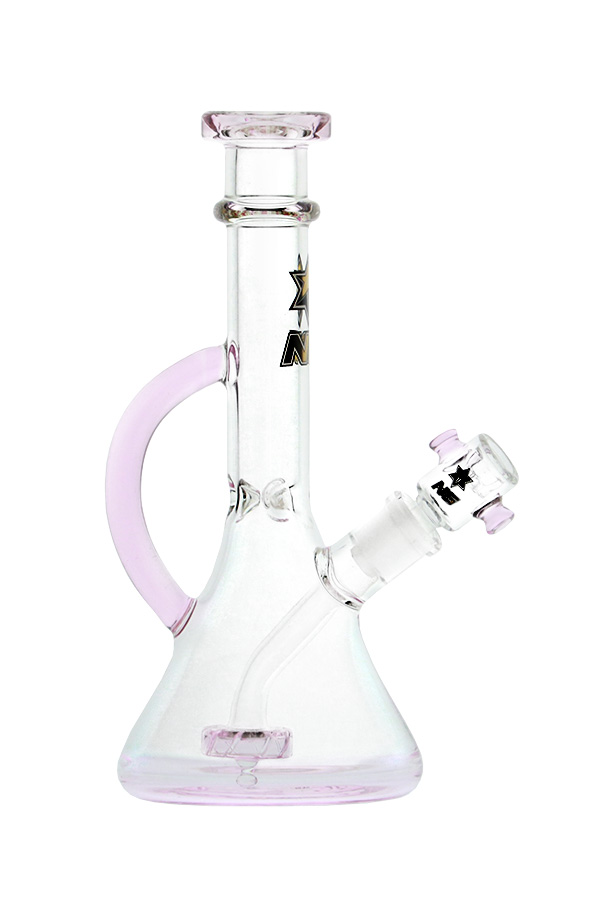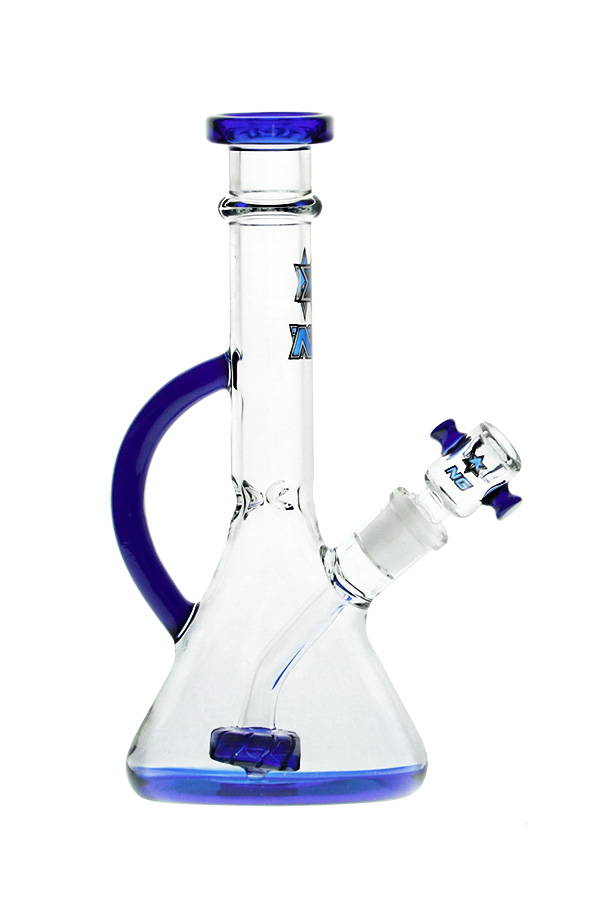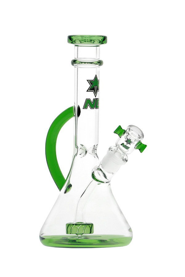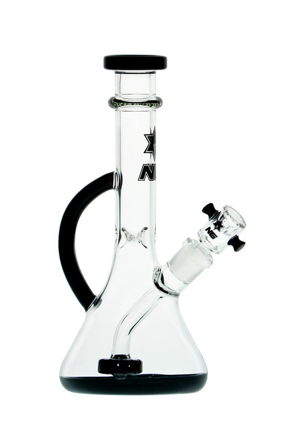 The Nice Glass beaker features an elegant stem handle, ice notches, a tire percolator and a starred herb bowl with double roll stoppers. It is topped off with a rimmed mouthpiece balancing the design perfectly.