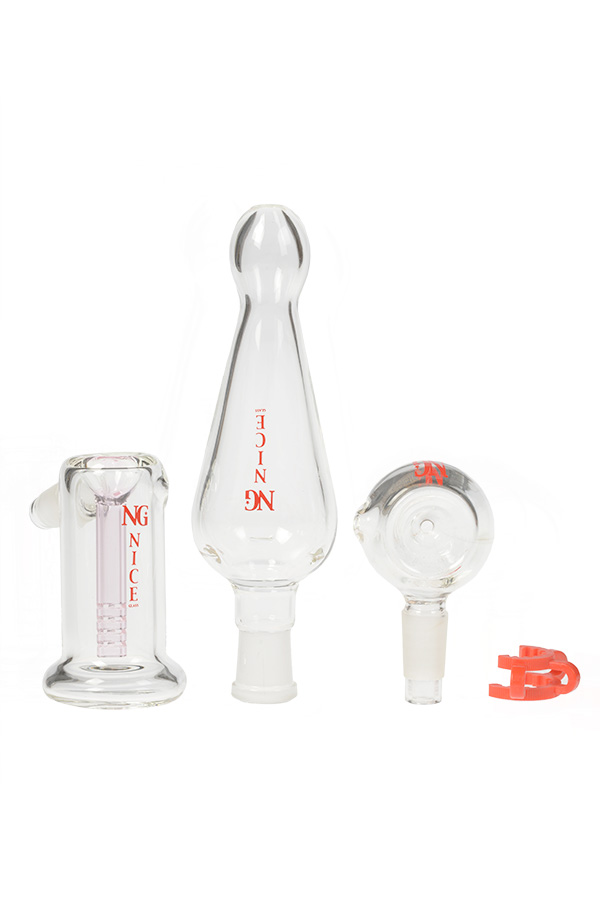 This is a handy little bubbler and pipe combo that is easily disassembled for traveling. It comes with a main tornado tube, a double wall bowl, and a slitted diffuser bubbler attachment. K-clip is also included.