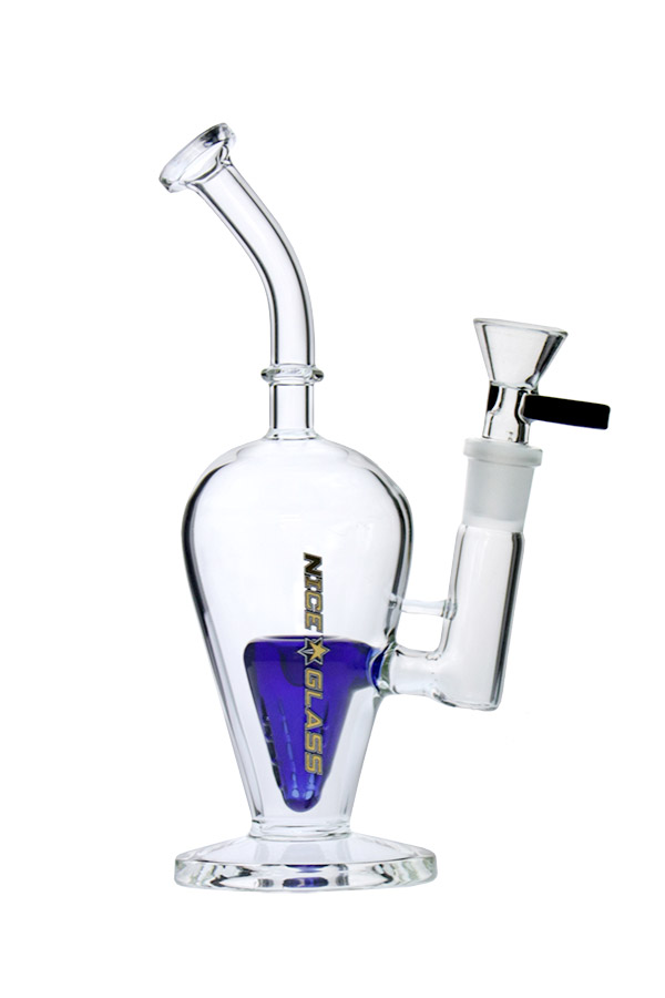 This reverse triangle bubbler features a cone percolator with perforated slits that effectively filter the smoke. The neck is curved and narrow and it comes with dome and quartz nail.