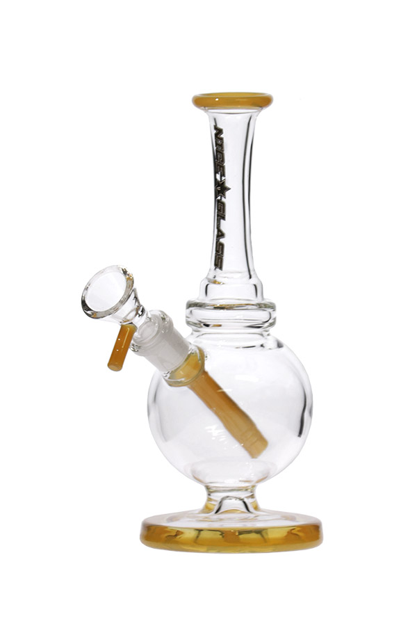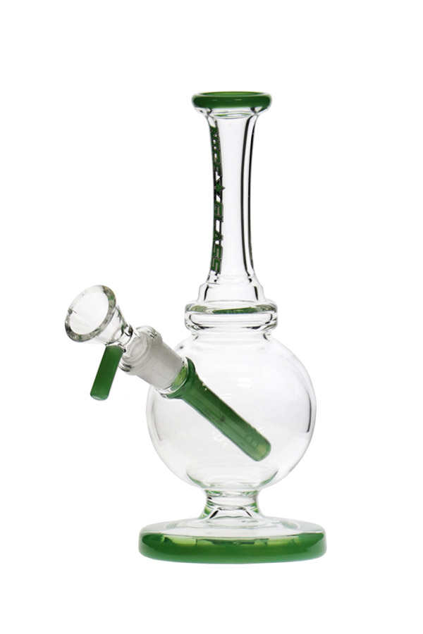 This ornate ball bubbler features coloured accents throughout. The coloured down-stem also has 6 slits with an open end and a bowl with roll stopper making it safe and easy to remove. It may be small but its sophisticated curves command attention.