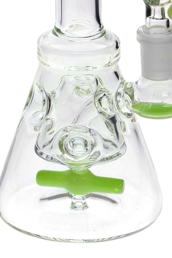 It spins! This is a fun Swiss bubbler featuring a spinning propeller that disperses the smoke as it goes around, creating loads of diffusion. The smoke then passes through the Swiss perc section creating more surface area to give you a smooth hit. Comes equipped with a narrow handle herb bowl.