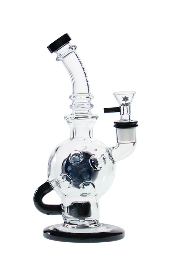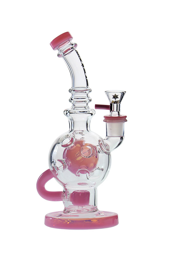 This Nice Glass recycler has a puck percolator and a ball chamber made to allow more cooling capacity. It features a single recycler stem, comes with a herb bowl and easily rigged up for a cool dab session. It is available in a range of colour options..