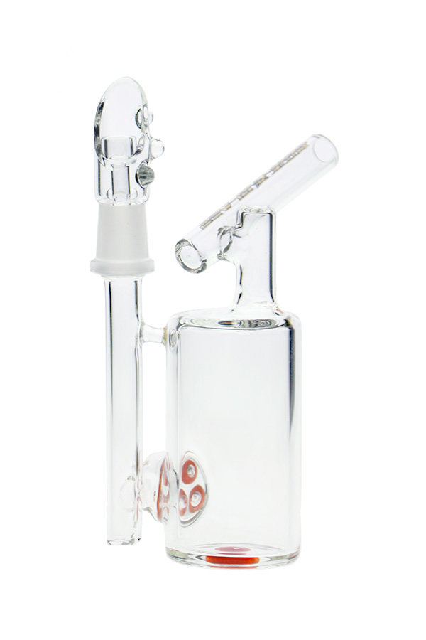 This slender cylindrical bubbler is equipped with a quartz nail and dome with a triple hole percolator. It measures at a total height of 6 inches with coloured bubble accent on the base bottom and a dome adorned with glass bubbles to match. Get a smoother smoking experience with this pocket-size mini rig no matter where you go.