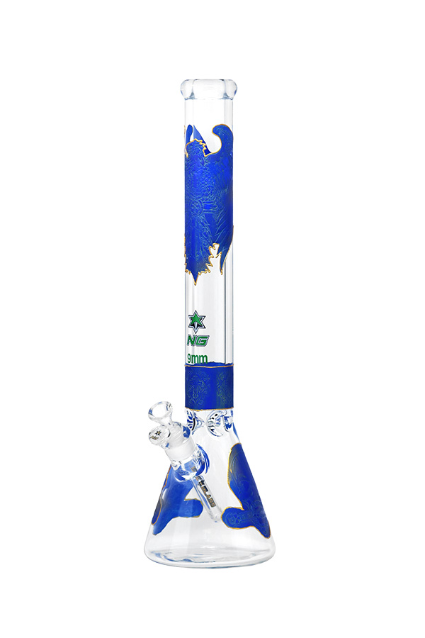 This tall beaker is embellished with metallic deco and comes equipped with ice notches, slitted diffuser downstem and a coned herb bowl. A thick and sturdy Nice Glass made to last with its 9mm construction and steady base.