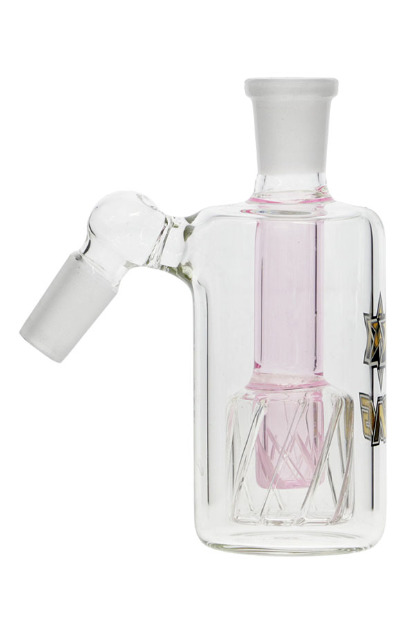 This ashcatcher features a drum percolator at the end of a full color glass stem, the tip of which also has similar gridded slits adding a second layer of diffusion. Add a little more aeration to your hits while keeping your bong water cleaner a little longer.